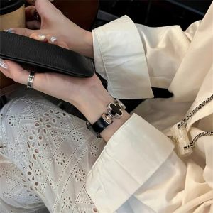 幸運を象徴する四つ葉のクローバーデザイン、手首飾りとしてもエレガントな印象でより高級感を演出します。