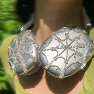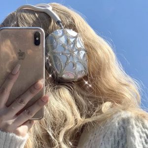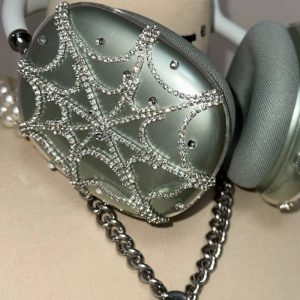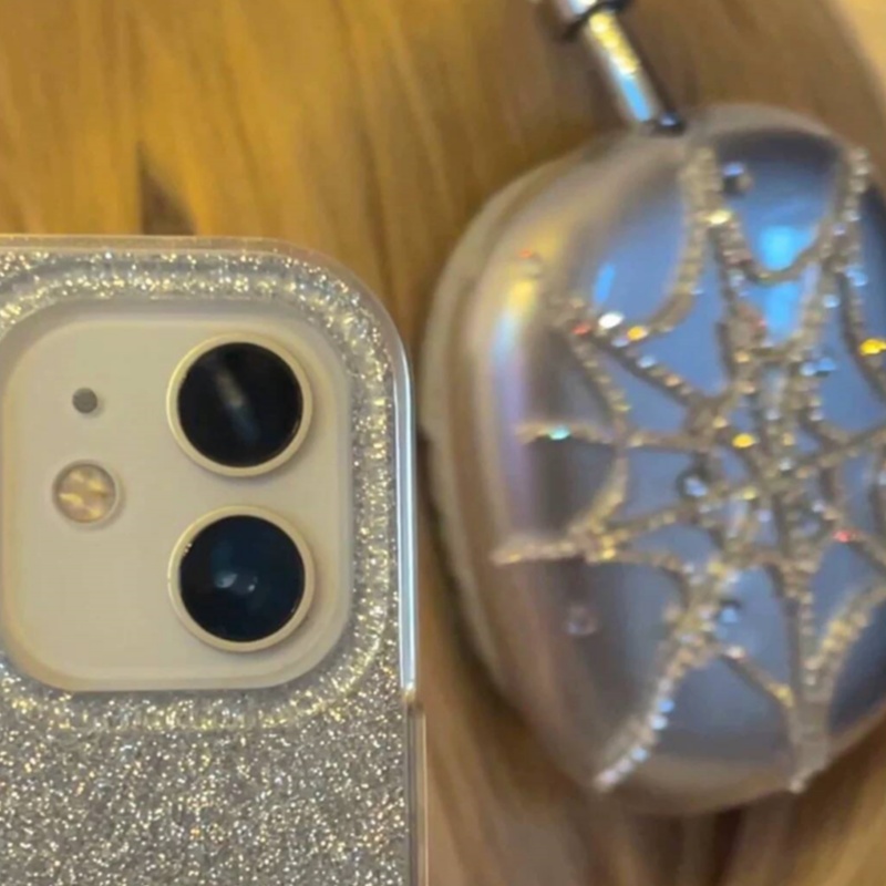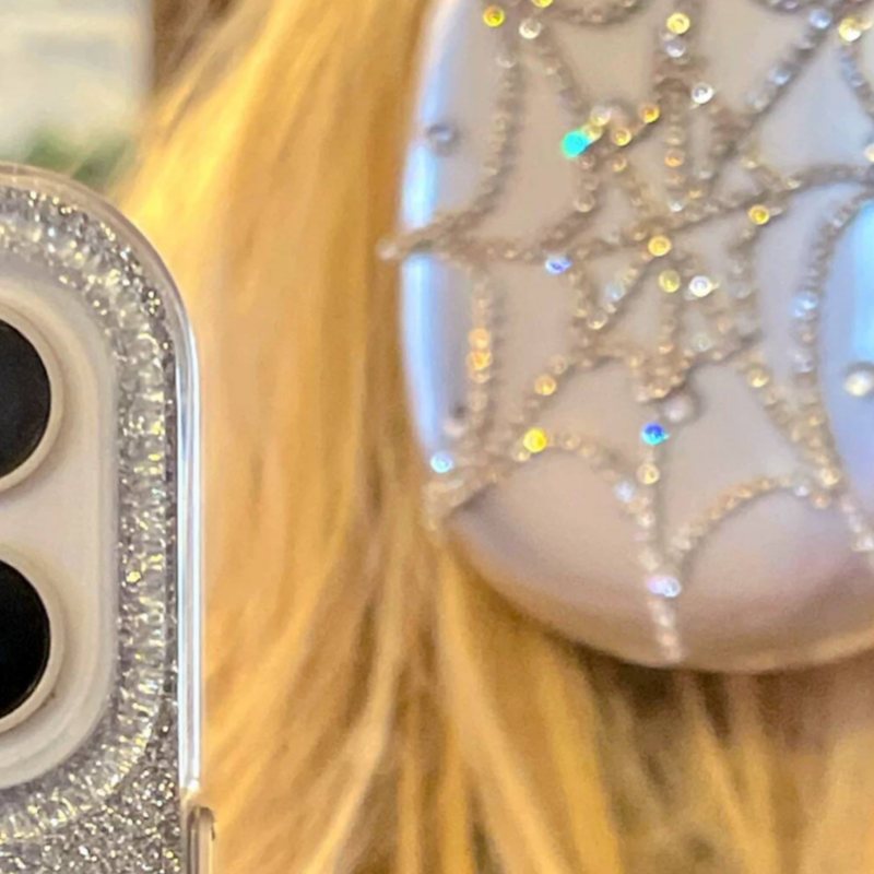クリアのケースに蜘蛛の巣の型のラインストーンをデコされ、持っているだけで目立っちゃう!