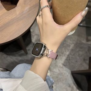 ピンクゴールドの金具&本革との組み合わせしたアップルウォッチベルト&保護ケースの2点セット。