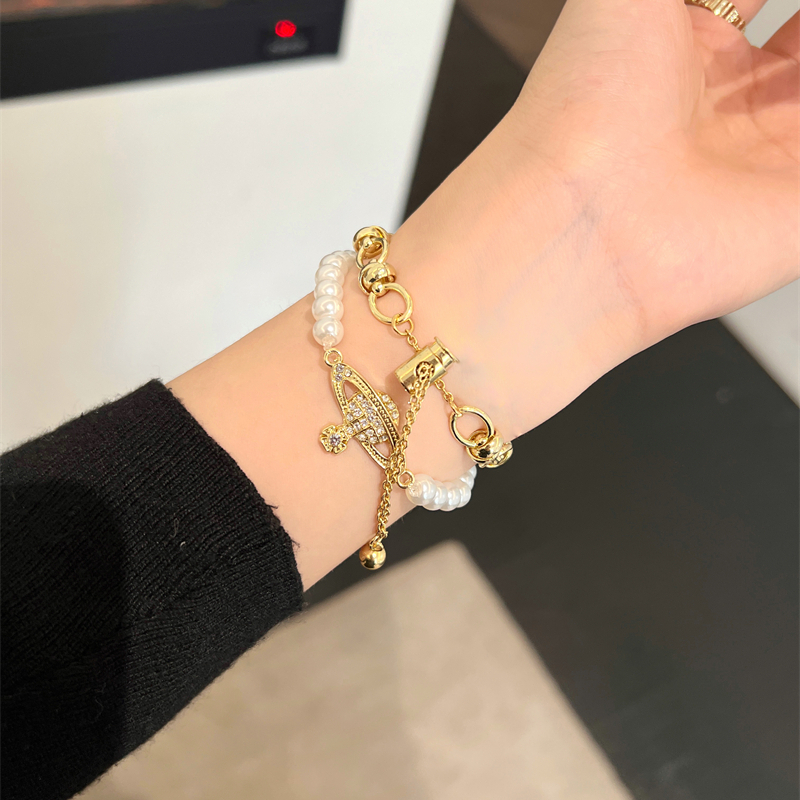 華奢なチエーン&ビーズとの組み合せがエレガント普段使いから、デートやイベントなどに大活躍してくれます。
