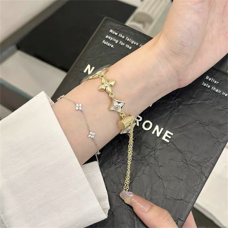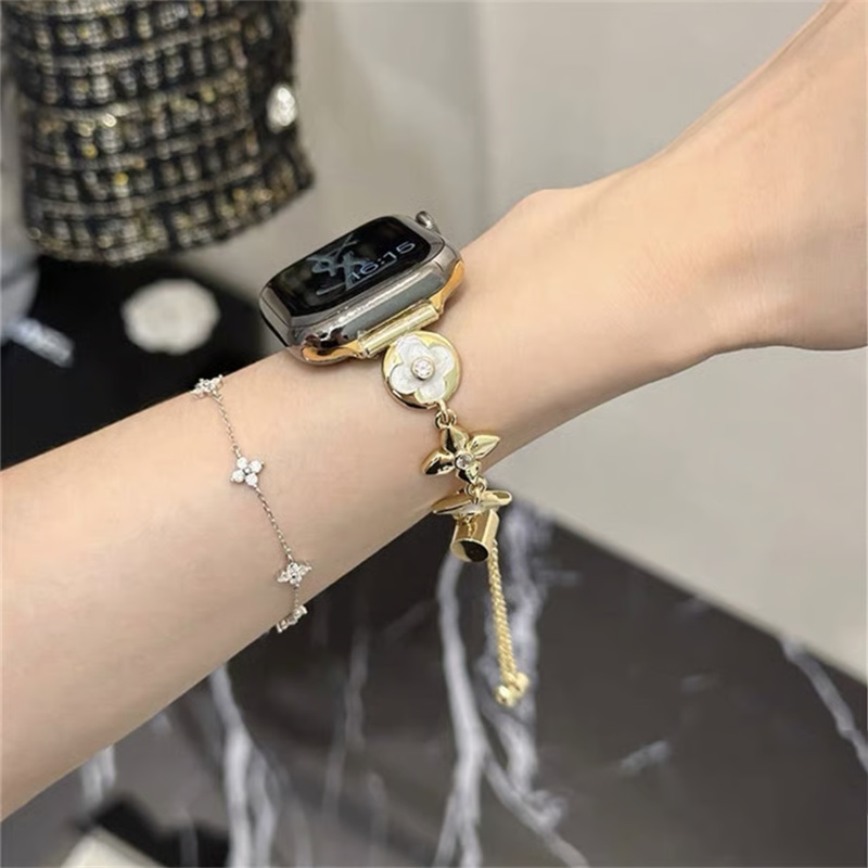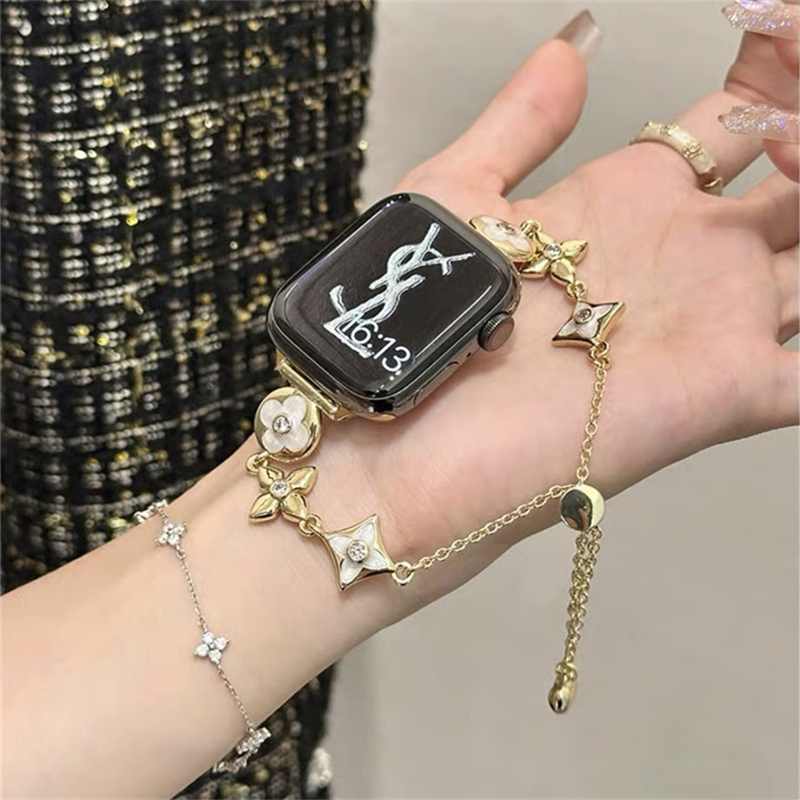 繊細なチェーンに、気品溢れるシェル風のフラワーモチーフと煌めくビジューをあしらった、まるで高級ブレスレットを身につけているような高揚感を。