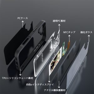 背面にE-INKディスプレイを搭載したiPhoneケースです。専用アプリを活用し、写真をインクスクリーンに転送し、自由にケースのデザインを変えることができます。あなたの個性と創造性を表現してみてください。消費電力0Wで画像を保持する高い省エネ性能を実現したので、バッテリーなしでスマホ電源がオフでもケースの画面は表示可能。 様々な画像を手軽にケース部分に映し出すことができるので、自分だけのスマホケースを作れます!