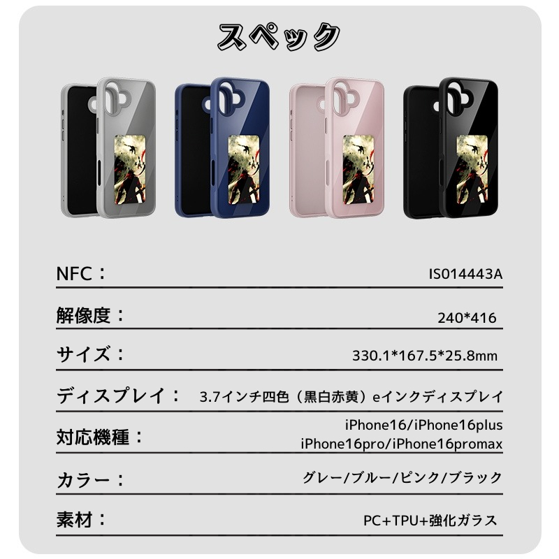 電子ペーパー iphone16ケース アイフォンケース 高級 e インク ディスプレイ スマホケース diy iPhoneケース アプリ 変更しやすい マグセーフ ケース