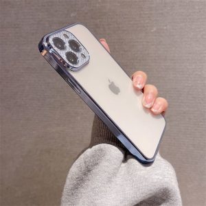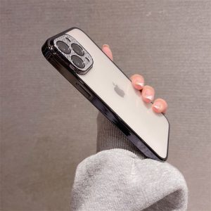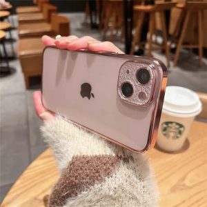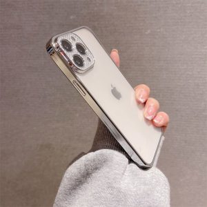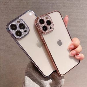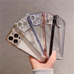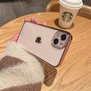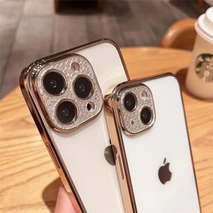 カメラフィルム付き iphone15 ケース 透明 iphone15pro/15plus ケース メタリック アイフォン14/14pro カバー ペア