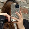iphone14/14plusケース パールチェーン iphone13 ケース キラキラ シワ加工 iphone12pro/11ケース 斜めがけ
