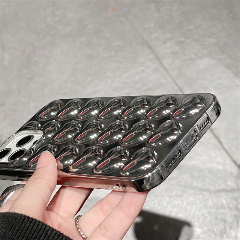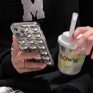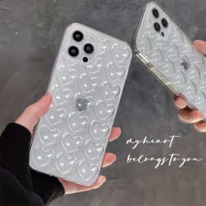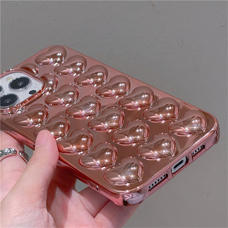 立体的なハート柄があしらったiPhone16/15ケース。