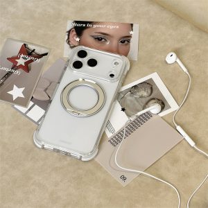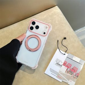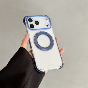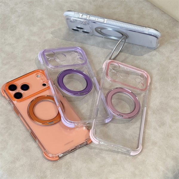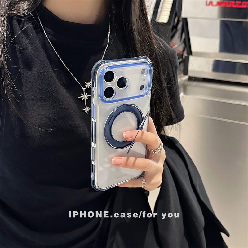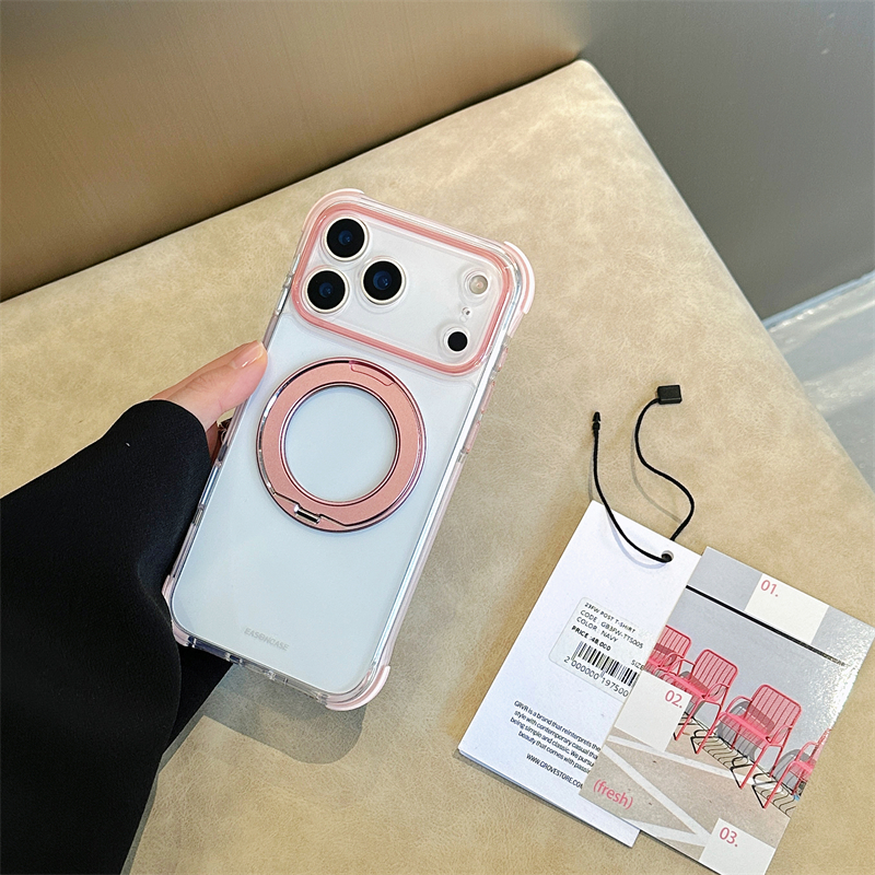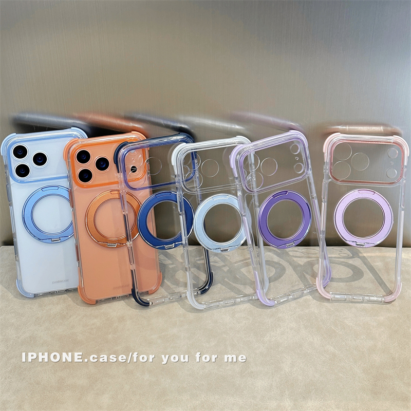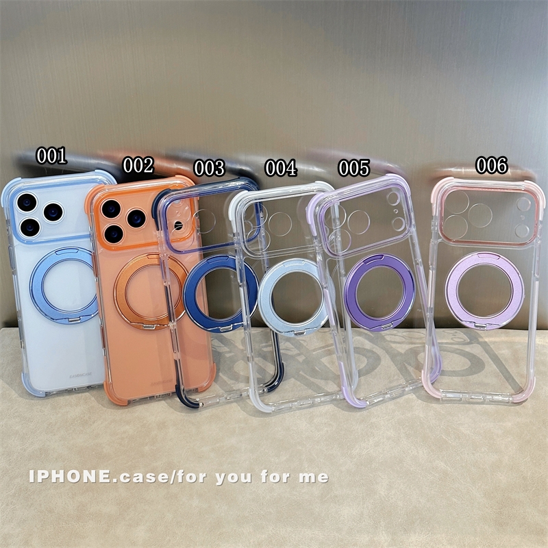 360°スタンド付き!カラフルなクリアiPhone17/16ケース!四隅に衝撃吸収クッションを設置、落下時の衝撃から本体を保護します。磁力搭載でmagsafe充電にも対応可能!全6色があります
