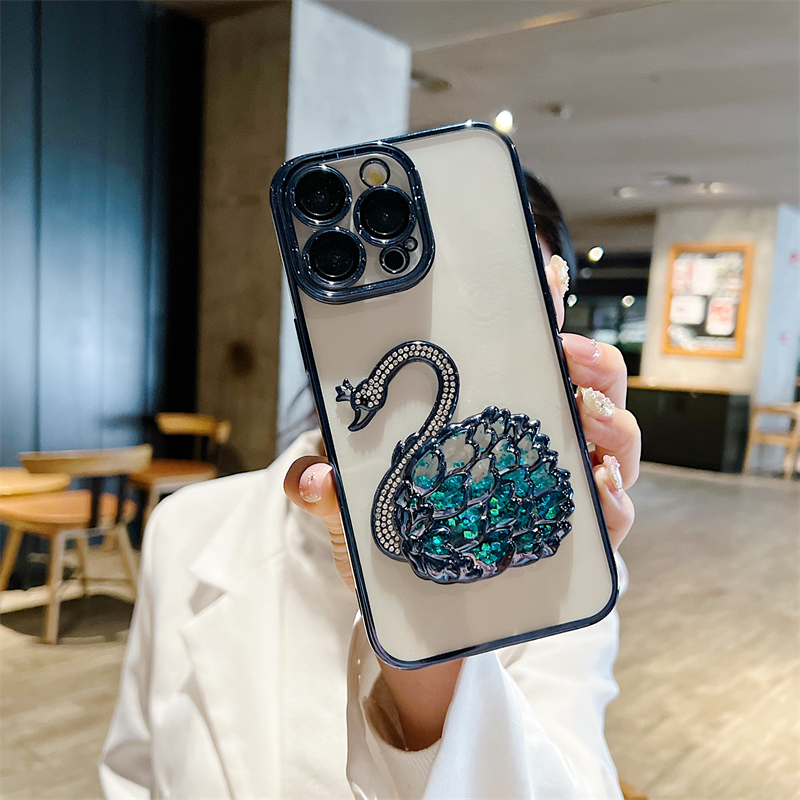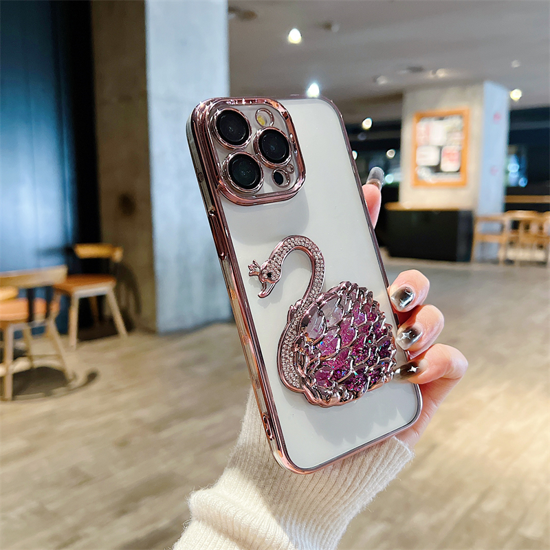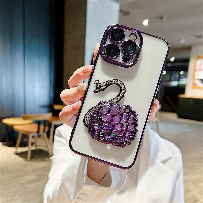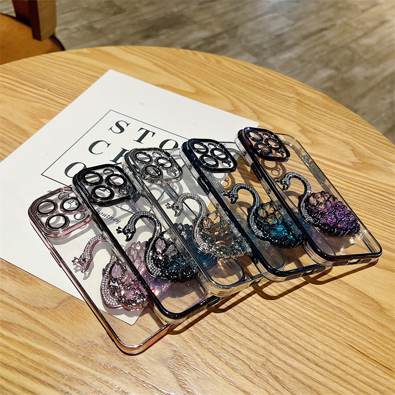 キラキラのグリッター入り、ラインストーンで飾られた白鳥モチーフのiPhoneケース!カメラまでフィルム付きで保護できるのはポイント。背面がクリアなのでスマホ本体の色も楽しめます。ケースの内側にキラキラシートを付けられて、2wayでお使いいただけます。