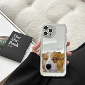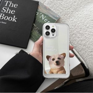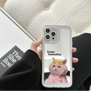 ミラー付きのiPhoneケース新作!背面はミラー素材になっているので、軽いお化粧直しの時にも便利!面白いアニマル柄でさらにかわいく見える!ファッションアイテムとしてもオススメです。