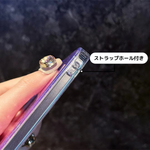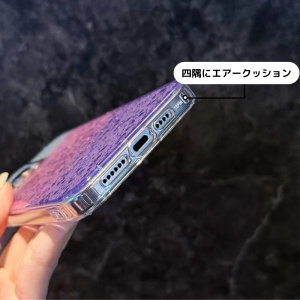 四隅は耐衝撃のエアークッションのデザインで、サイドにはストラップホールも付いております。