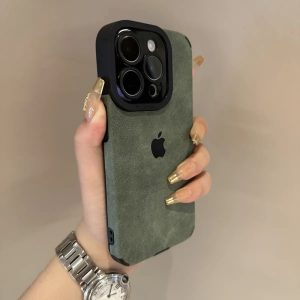 スエードデザインのアイフォン16/15ケース。