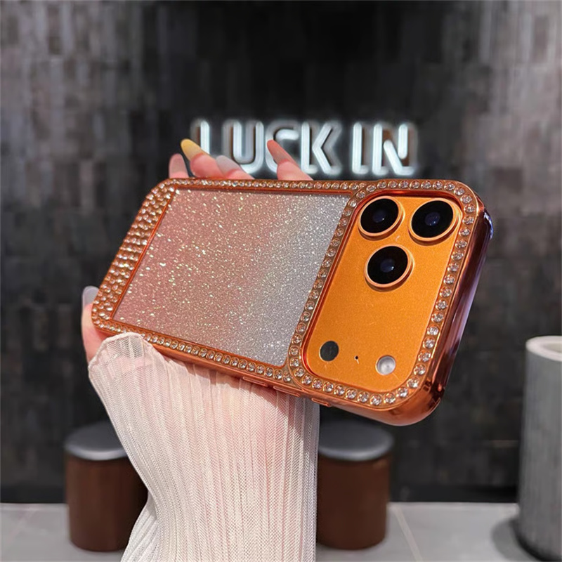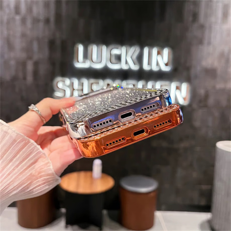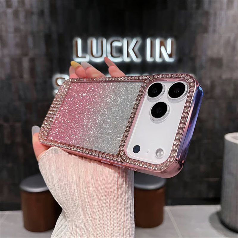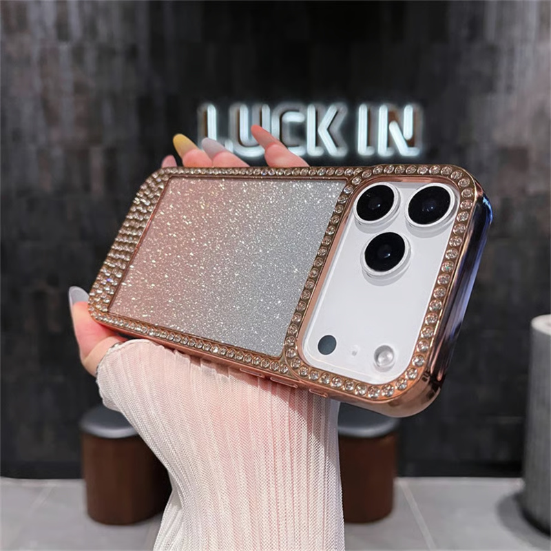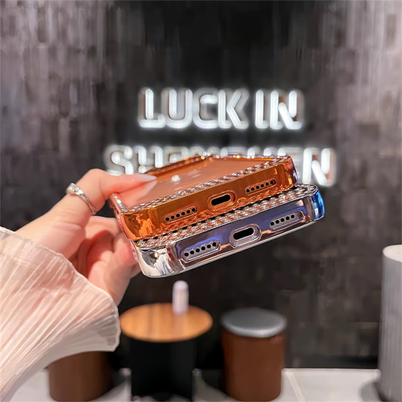 キラキラと輝くラインストーンをあしらったクリアケース。