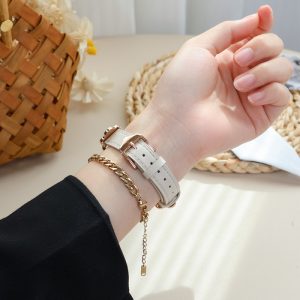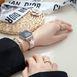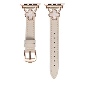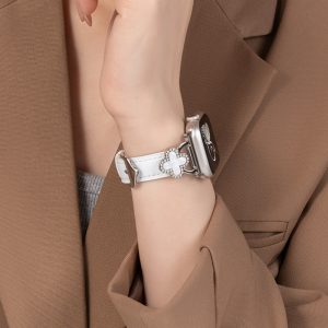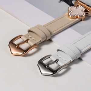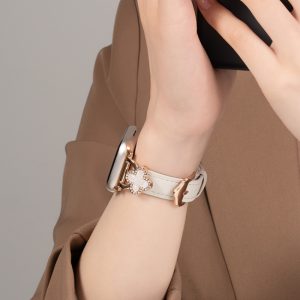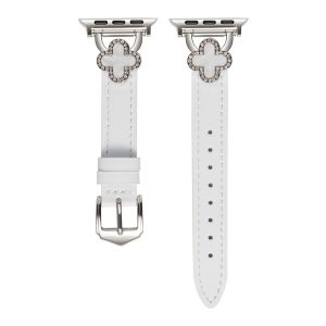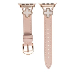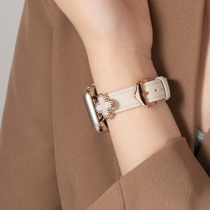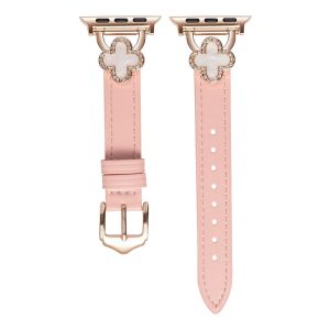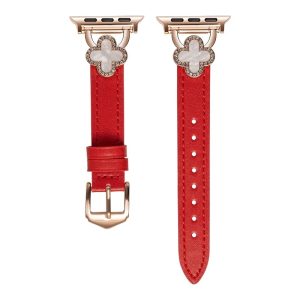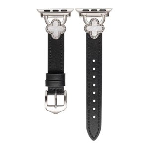 四つ葉のクローバーモチーフが可愛く見える、本革製アップルウォッチバンド。小さなラインストーンを飾り、華やかでエレガントな雰囲気を引き立てています。上質な本革素材に丁寧な縫製、耐用性に優れ、長期間お使いいただけます。全7色があります。
