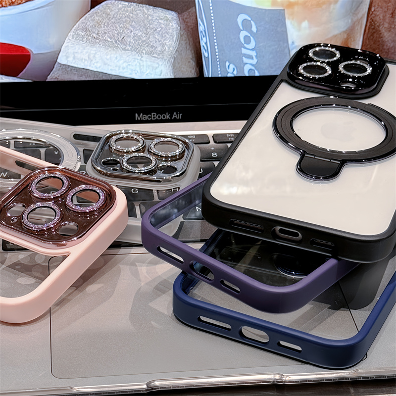 MagSafeリング付き、スタンド一体型のiPhoneケースです。横置き、縦置き、どちらも対応で、両手を解放できてかなり便利です。透明な高品質なケースは、スマホを優雅に包み込み、清潔感が漂います。シンプルに装着するのもいいですが、内側に好きなカードや写真、シールをはさんでアレンジを楽しめ、中身を入れ替えれば、いつでも気分転換ができます。自分だけのスマホケースを作りましょう♪