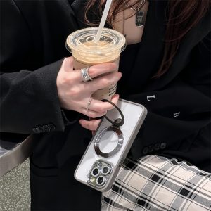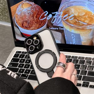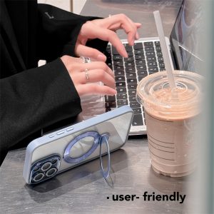 MagSafeリング付き、スタンド一体型のiPhoneケースです。横置き、縦置き、どちらも対応で、両手を解放できてかなり便利です。透明な高品質なケースは、スマホを優雅に包み込み、清潔感が漂います。シンプルに装着するのもいいですが、内側に好きなカードや写真、シールをはさんでアレンジを楽しめ、中身を入れ替えれば、いつでも気分転換ができます。自分だけのスマホケースを作りましょう♪