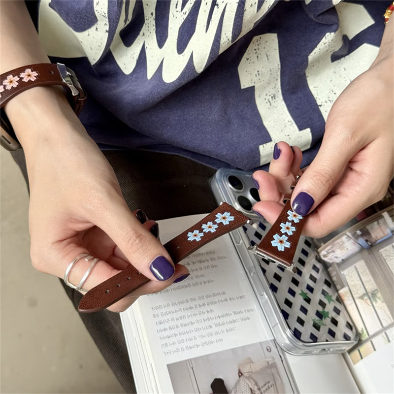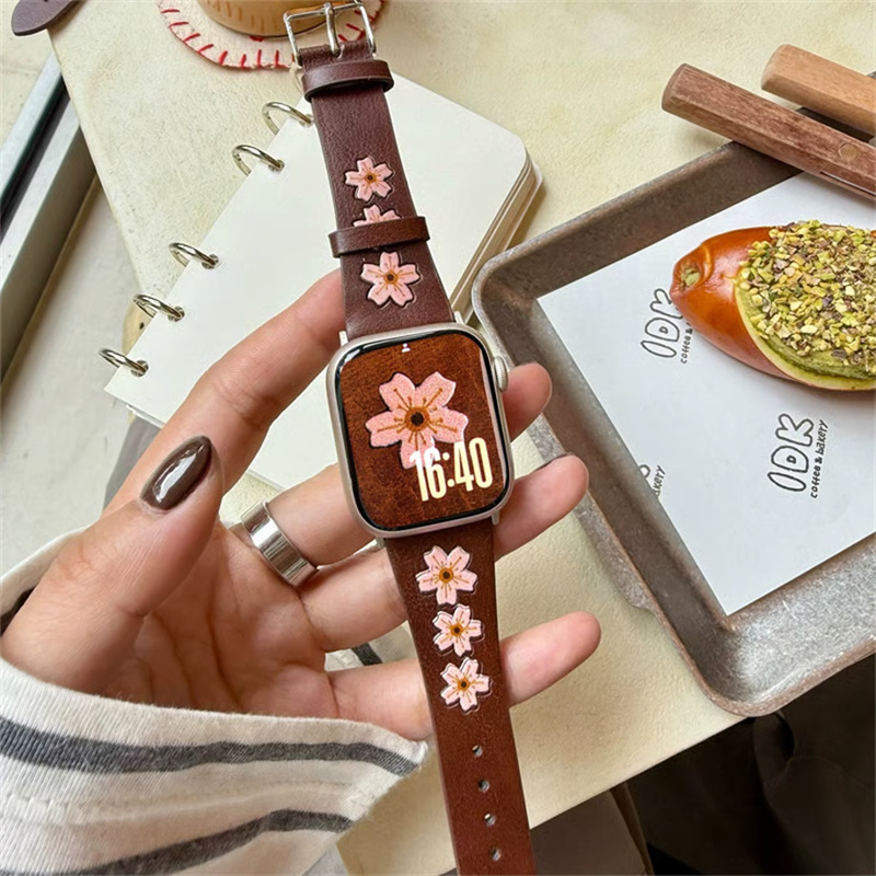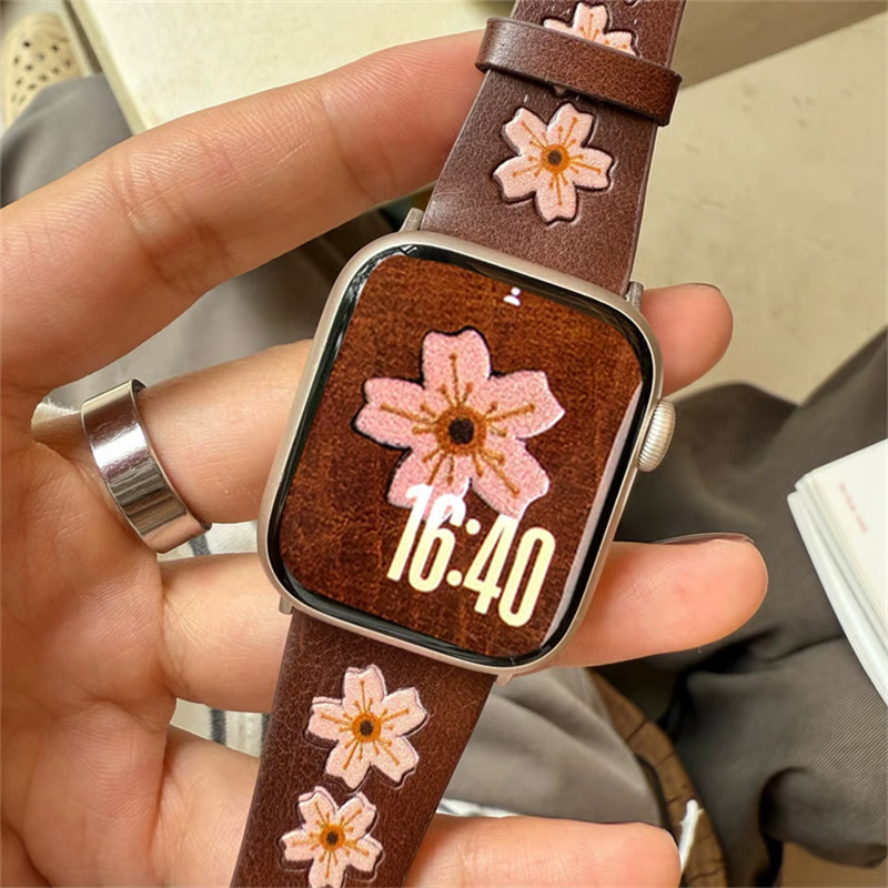 女性向けの桜モチーフをあしらったアップル ウォッチバンド。